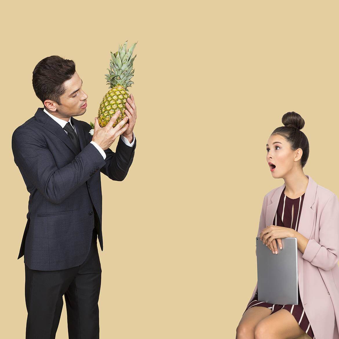 Young girl stunned ‘cuase groom is going to kiss a pineapple On Posted on April 16, 2019 Posted By pmp Share: Used between list items, there is a space after the comma.